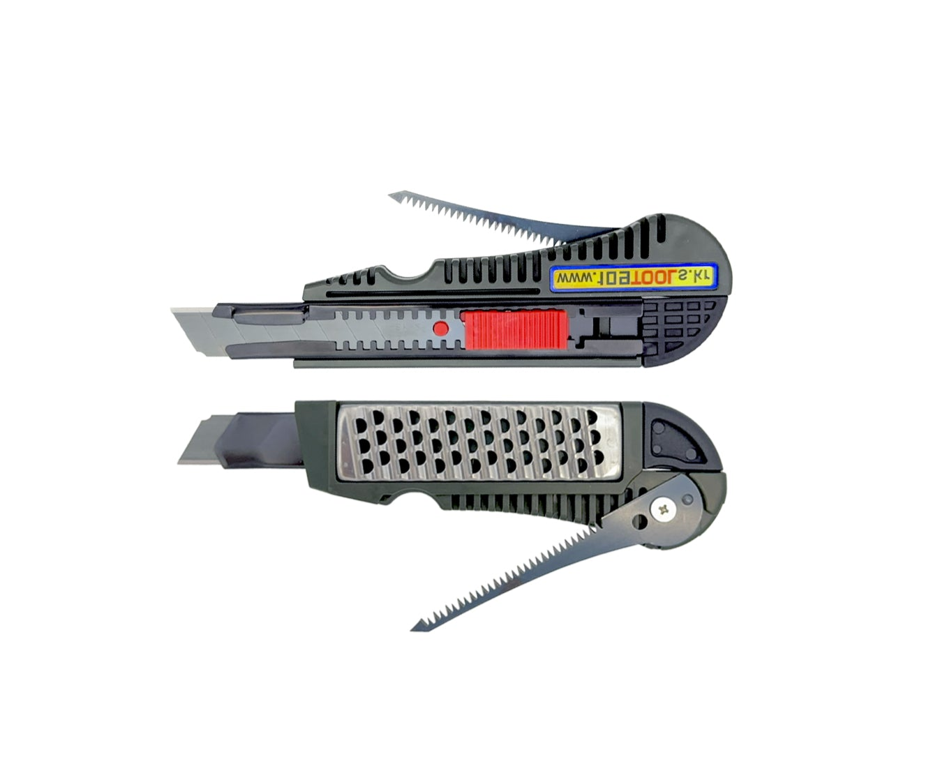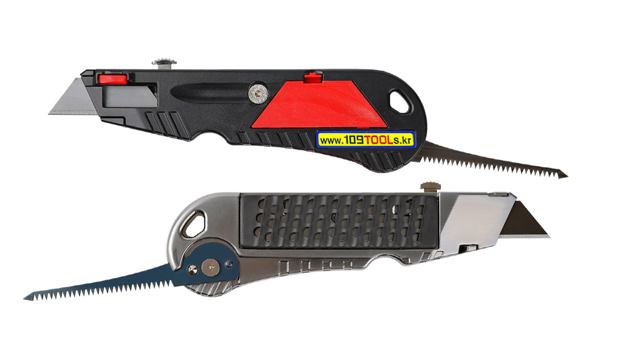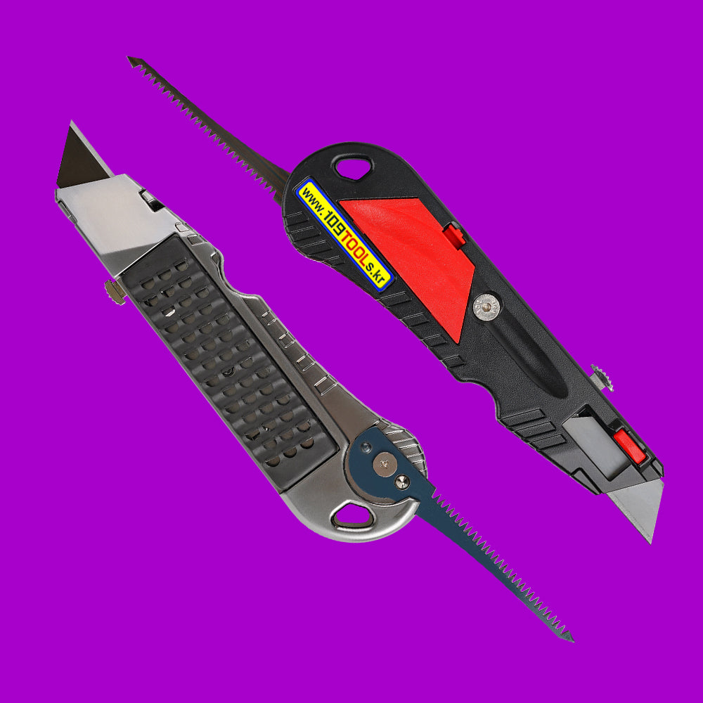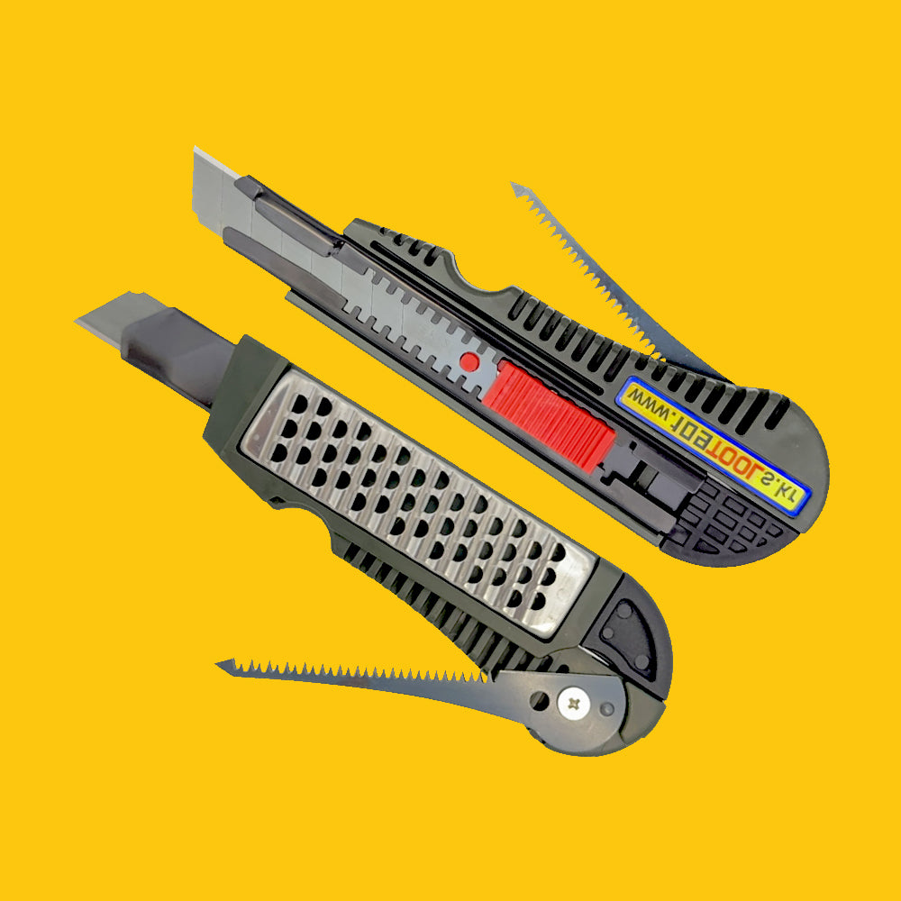 Adjustable blade depth knife / Tape measure hook groove / Blade storage / Gypsum board rasp / Jab saw