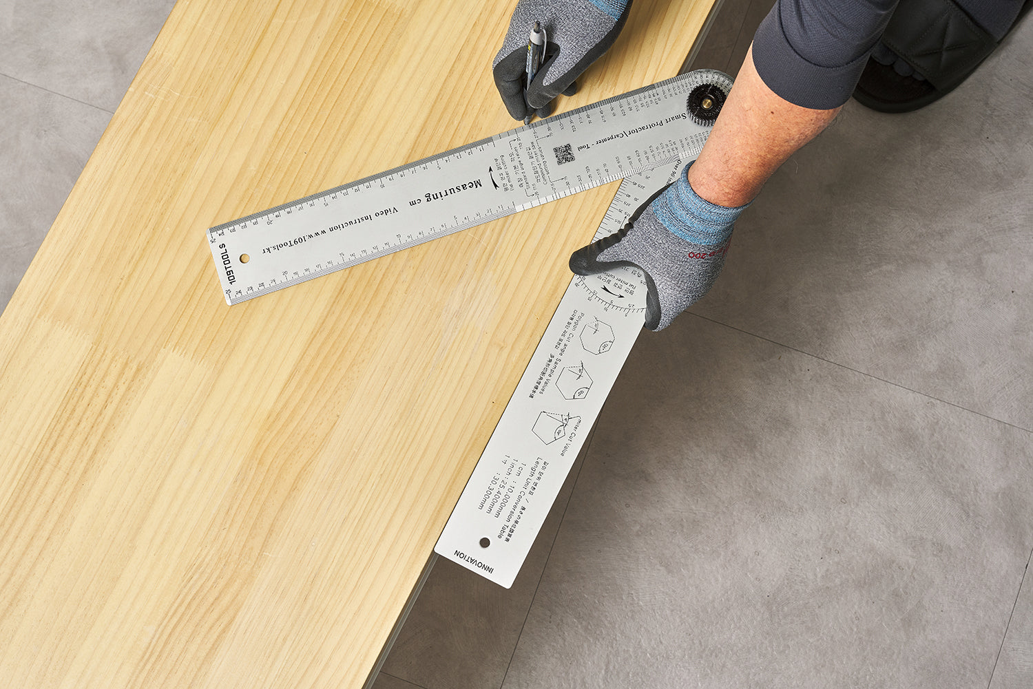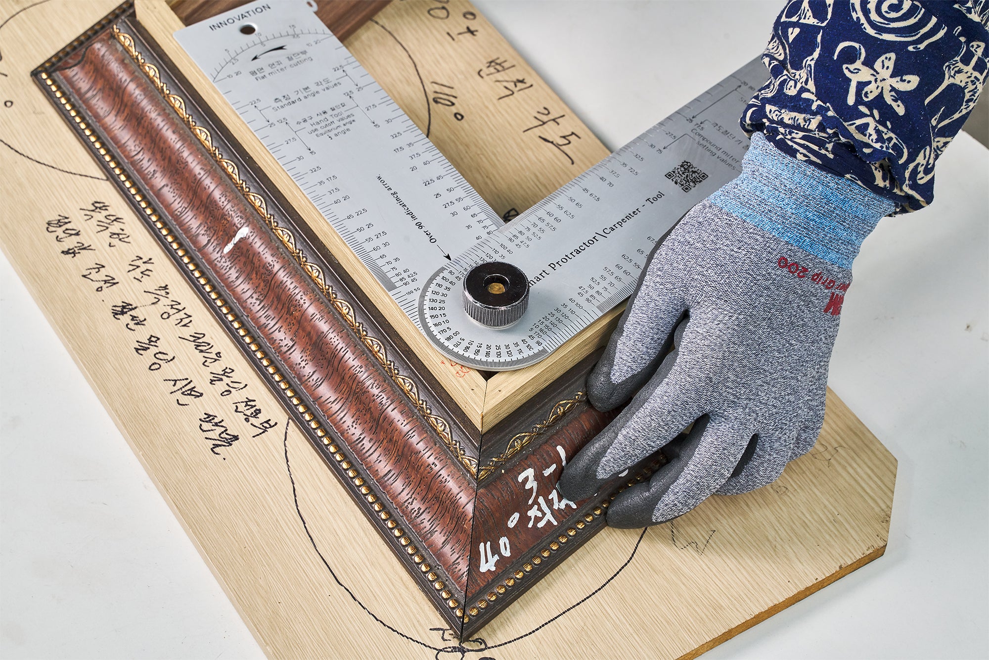 The Miter saw protractor can be used in a variety of work environments. It can also be used for polygon marking on steel plates or for checking pipe angles.