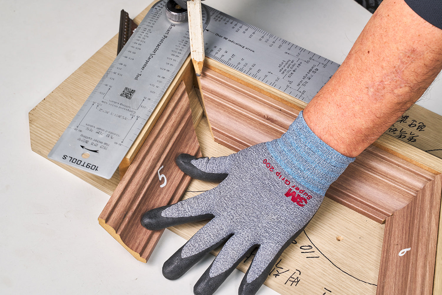 We noticed that the angular values displayed on the international standard protractor were different from the angular dimensions displayed on the composite miter saw tray.